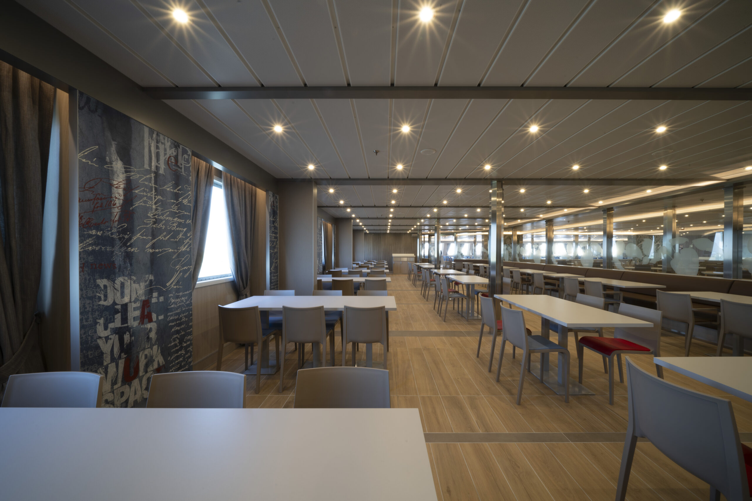 Na pokładzie M/F Varsovia znajduje się aż 230 kabin o różnych standardach, w tym kabiny 4-osobowe, co zapewnia wygodę i prywatność dla podróżujących. Dla tych, którzy preferują bardziej elastyczne opcje, prom oferuje również 107 miejsc w fotelach lotniczych, zapewniając wygodę i komfort podczas rejsu.